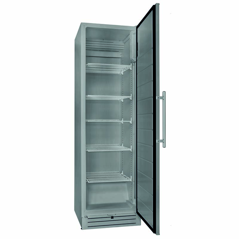 Innowacyjna, przestronna i o nowoczesnym wzornictwie lodówka akumulacyjna to idealne rozwiązanie dla małych firm. Wyposażona w automatyczny system rozmrażania i automatyczne odparowywanie wody. Kolor srebrny wewnątrz i na zewnątrz. Wewnętrzne oświetlenie LED. Termostat elektromechaniczny. Solidny uchwyt, regulowane nóżki i półki. Drzwi dwustronne.