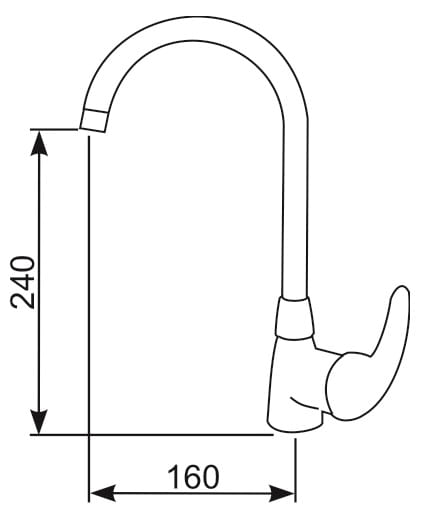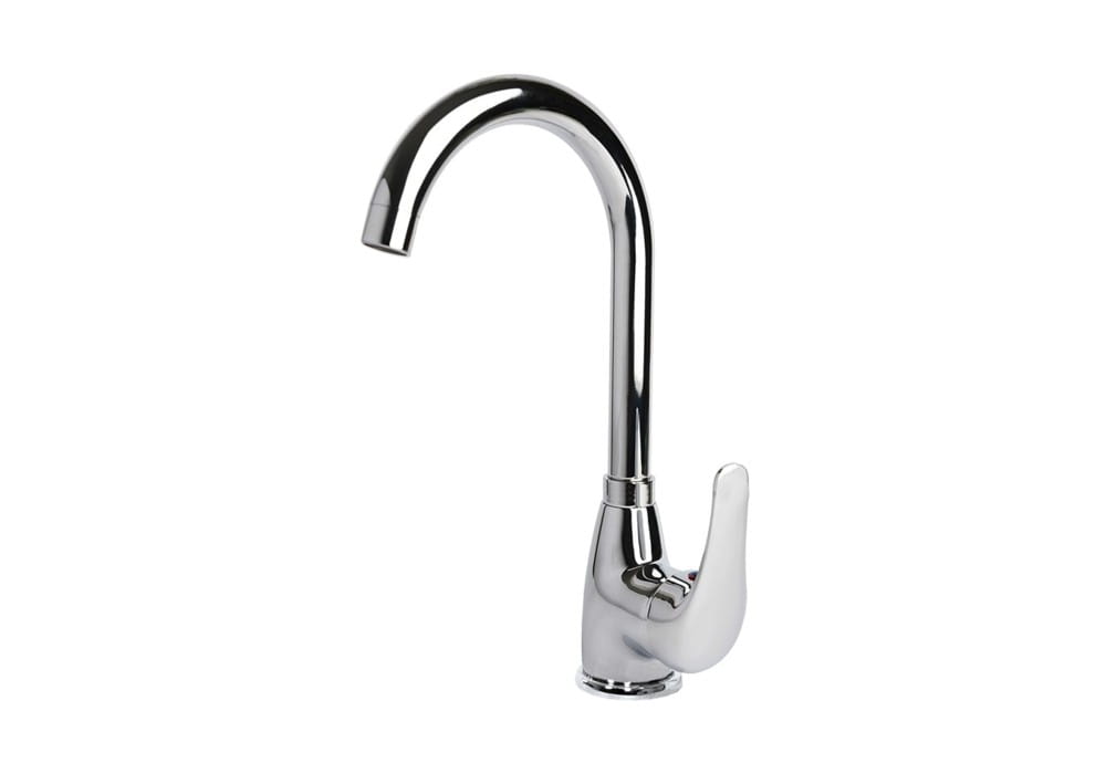 Bateria zlewozmywakowa stojąca, jednootworowa, jednouchwytowa z mieszaczem ceramicznym Ø 40. Wylewka obrotowa. W komplecie dwa elastyczne wężyki przyłączeniowe w oplocie stalowym z końcówką 3/8″.