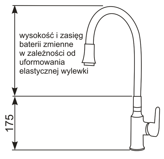 - Wysokość baterii zmienna w zależności od ukształtowania wylewki.