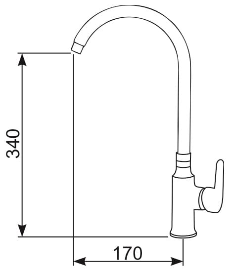 Bateria zlewozmywakowa stojąca, jednootworowa, jednouchwytowa. Wylewka obrotowa. Mieszacz ceramiczny. W komplecie dwa elastyczne wężyki przyłączeniowe w oplocie stalowym z końcówką 3/8″.