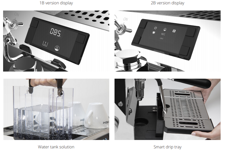 • System GSP (Gradual Soft Pre-Infusion) - możliwość regulacji wstępnego zaparzania w zakresie od 0 do 20 sekund za pomocą wyświetlacza OLED (ciśnienie wzrasta stopniowo do pożądanej wartości)