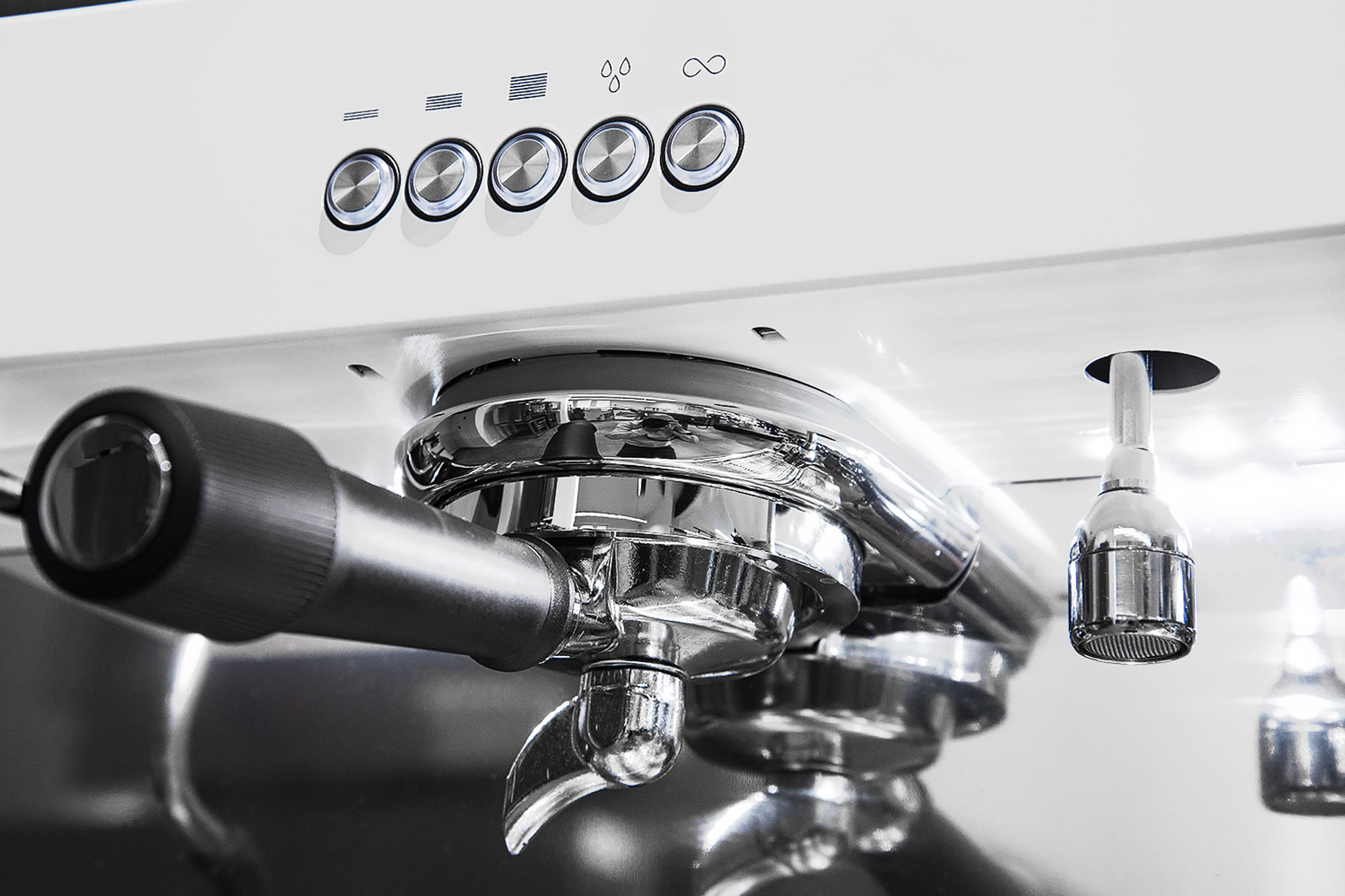 - 2 dysze do spieniania mleka Cool Touch regulowane pokrętłami ½