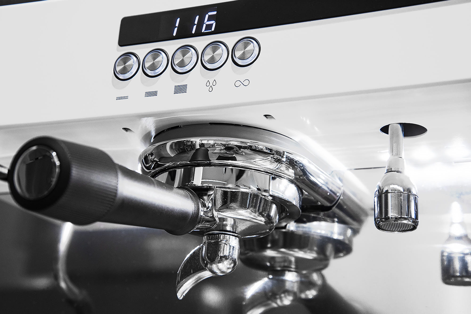 - 2 dysze do spieniania mleka Cool Touch regulowane dźwigniami
