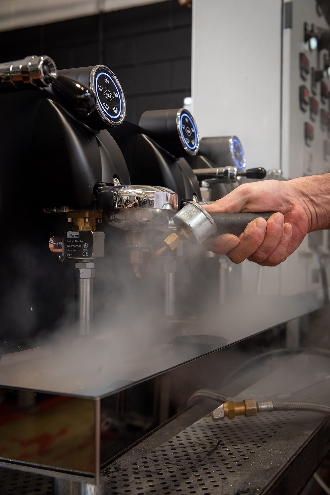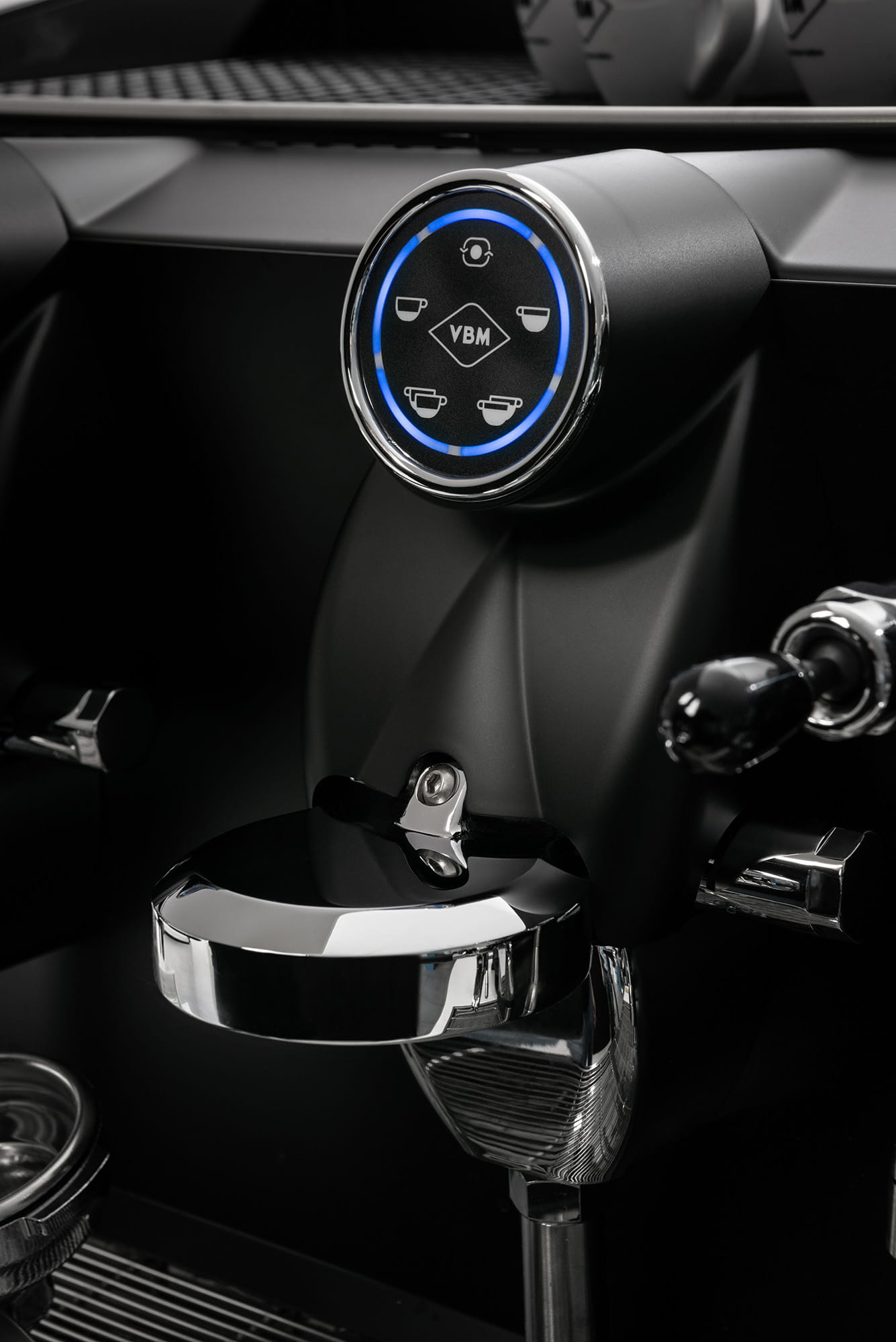 - Sterowane dyszą spieniania mleka oraz wylewką wody za pomocą ergonomicznych dźwigni, które zapewniają szybką obsługę ekspresu