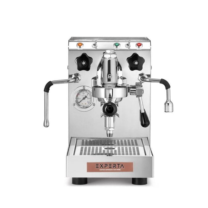 Fresco Experta to seria kompaktowych ekspresów kolbowych, mimo niewielkich wymiarów to w pełni profesjonalne urządzenia polecane szczególnie do małej gastronomii czy użytku domowego. Ekspres Experta Pro posiada 1 grupę i jest modelem półautomatycznym, obsługuje się go ręcznie za pomocą dźwigni. Wykonany został w całości ze stali nierdzewnej, wyposażony w miedziany bojler wewnętrzny o pojemności 1,3 l zapewnia ciągłą cyrkulację ciepłej wody, posiada również wewnętrzny zbiornik na wodę o pojemności 3l.