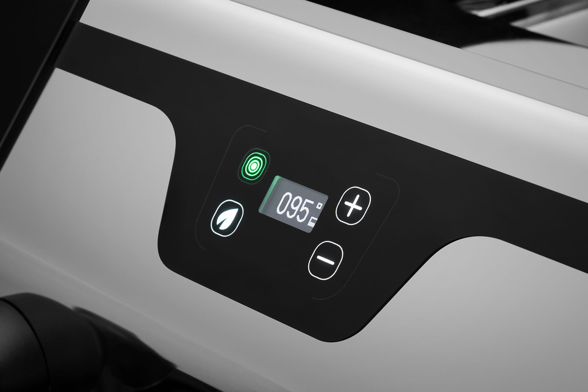 • Wyświetlacz OLED z czteroma przyciskami pojemnościowymi, które pozwalają na ustawienie temperatury zaparzania, temperaturę pary