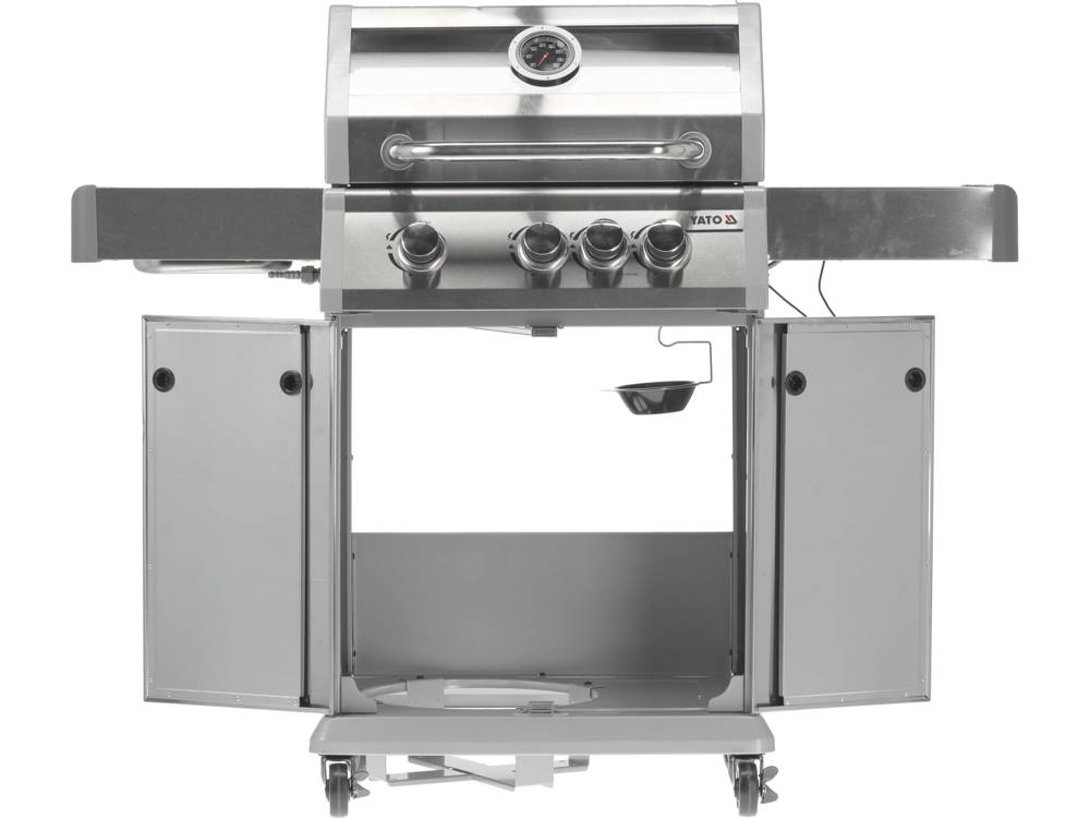 GRILL GAZOWY 3+1 STAL NIERDZEWNA 11,5KW, Z SZYBĄ, YG-20015