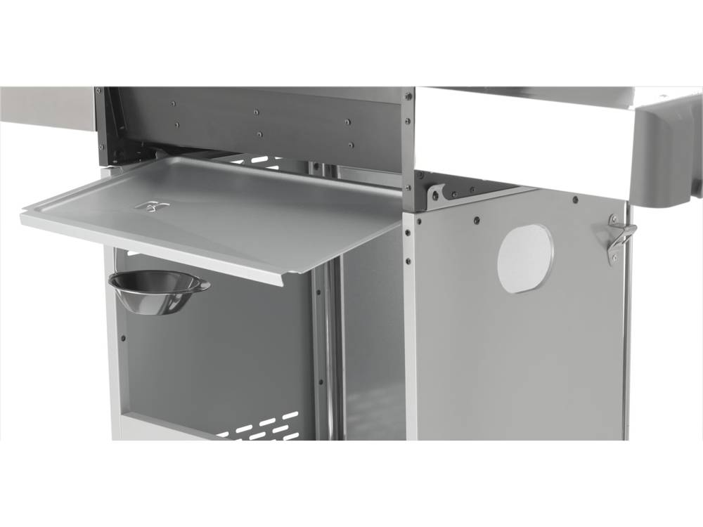 • Półki boczne oraz pojemna, zamykana szafka ułatwią przechowywanie przypraw i niezbędnych akcesoriów.