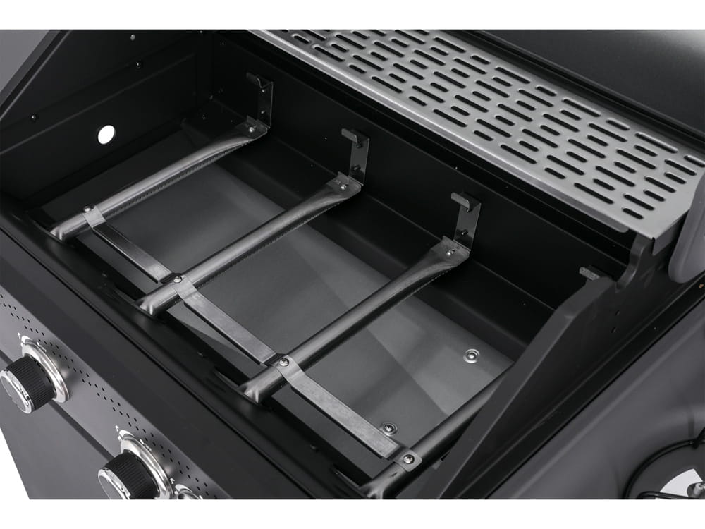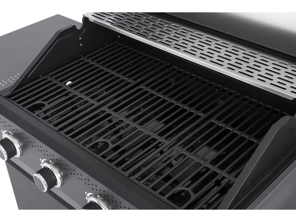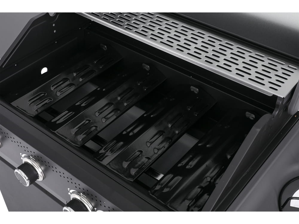 - ilość palników: 4+1, czyli 3 palniki główne ze stali nierdzewnej, każdy o mocy 3 kW. 1 palnik boczny o mocy 2,2 kW