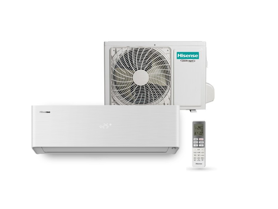 Klimatyzator Hisense Energy Pro X QH35XV4A o mocy 3,5 kW to nowoczesne urządzenie typu Split, idealne do średnich pomieszczeń.Charakteryzuje się wysoką klasą energetyczną A+++ zarówno w trybie chłodzenia (SEER 8,5), jak i ogrzewania (SCOP 5,1).Działa efektywnie w szerokim zakresie temperatur: od –15 °C do +43 °C w trybie chłodzenia oraz od –22 °C do +24 °C w trybie grzania.Wyposażony jest w ekologiczny czynnik chłodniczy R32 oraz zaawansowane technologie, takie jak generator jonów Hi-NANO i filtr 4-w-1 (witamina C, jony srebra, katechina, HEPA), co zapewnia czyste i zdrowe powietrze.Dodatkowo, posiada funkcję samoczyszczenia jednostki wewnętrznej i zewnętrznej oraz możliwość sterowania za pomocą aplikacji Hisense 3D dzięki wbudowanemu modułowi Wi-Fi.W zestawie znajduje się jednostka wewnętrzna, jednostka zewnętrzna, pilot bezprzewodowy oraz moduł Wi-Fi.Klimatyzator Hisense Energy Pro X QH35XV4A to doskonały wybór dla osób poszukujących efektywnego i energooszczędnego rozwiązania do chłodzenia i ogrzewania pomieszczeń.