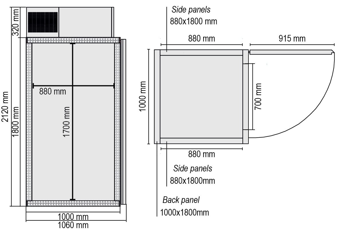 Komora mroźnicza | mini mroźnia | 1060x1000x2120 mm | 1300 l | z agregatem