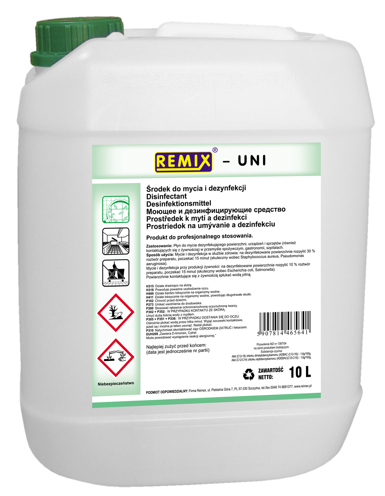 Koncentrat do mycia i dezynfekcji UNI 10 L Remix