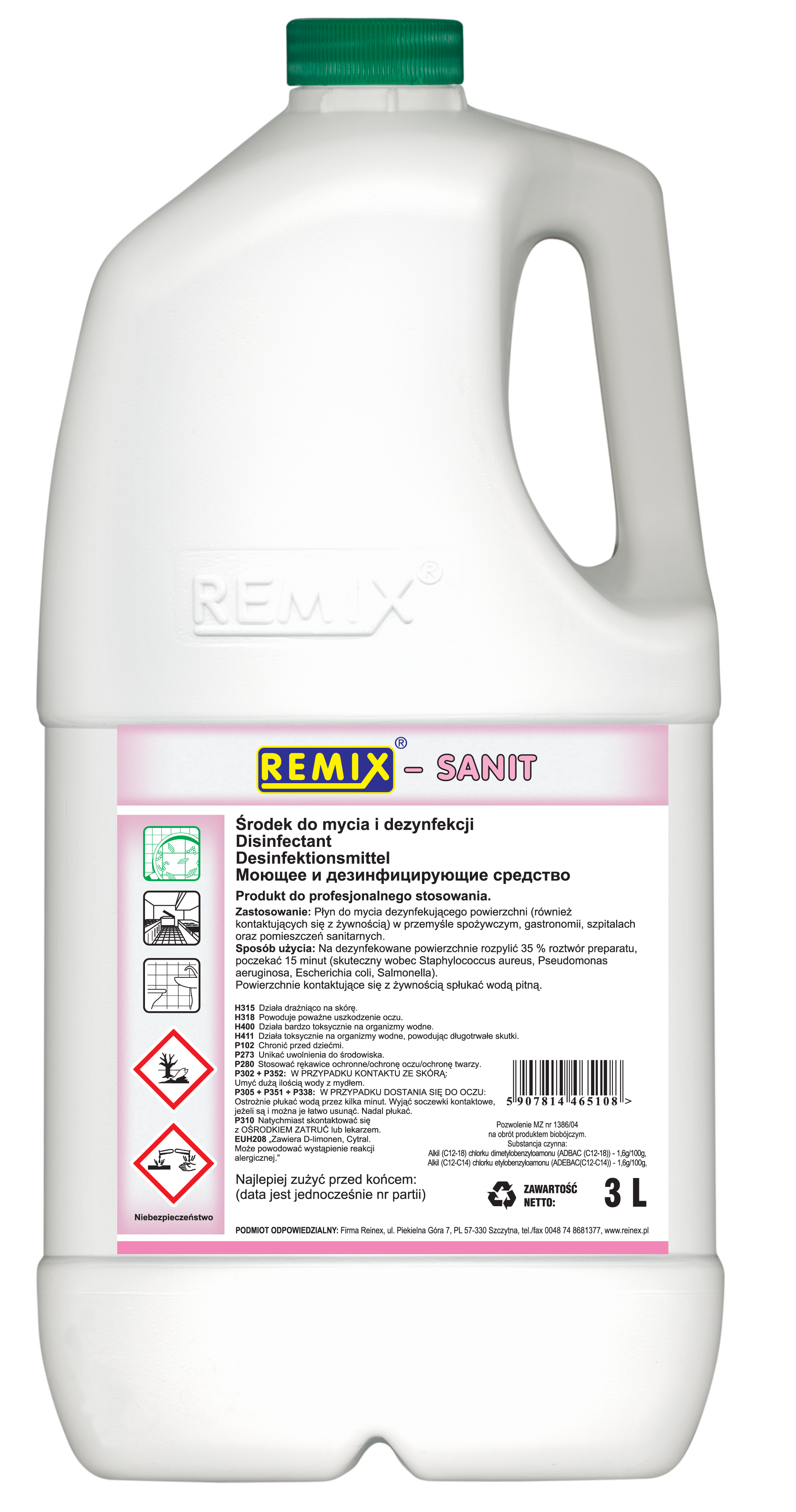 Koncentrat do mycia i dezynfekcji sanitarnej, kwaśny SANIT 3 L Remix