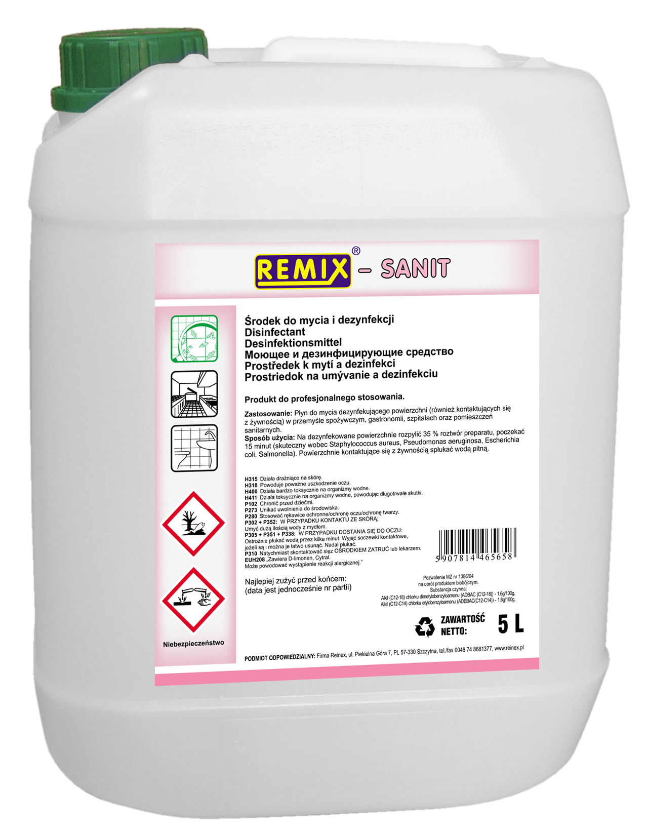 Koncentrat do mycia i dezynfekcji sanitarnej, kwaśny SANIT 5 L Remix