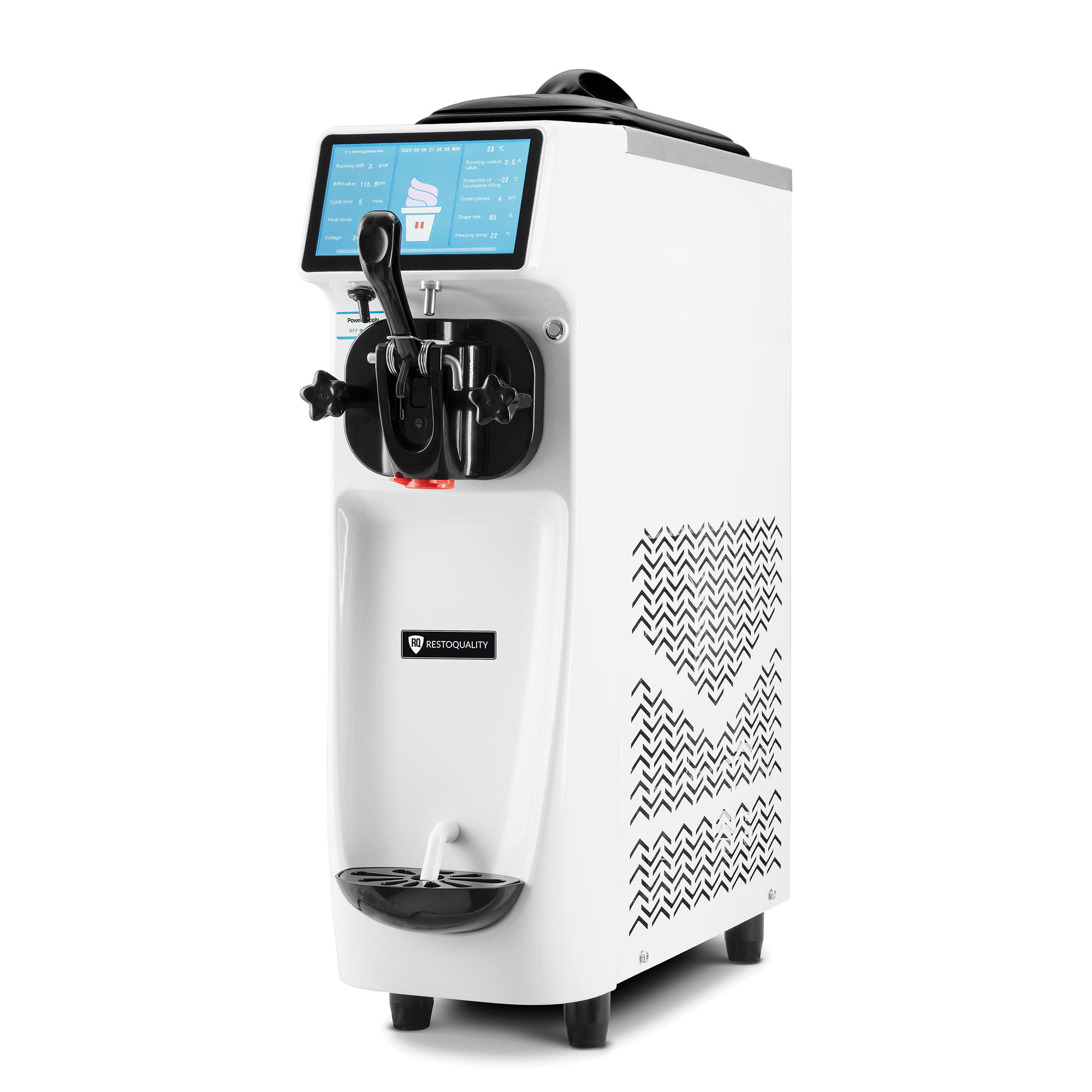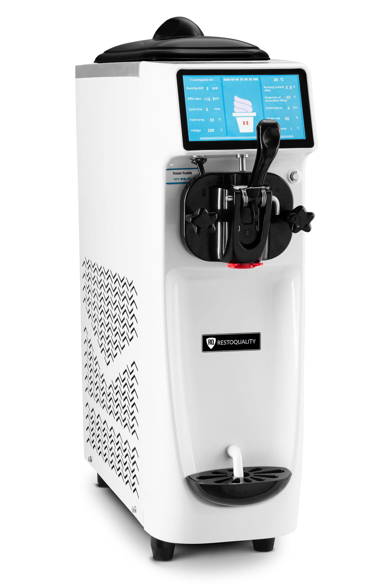 - Za pomocą dotykowego panelu sterowania z dużym 7 calowym ekranem LCD łatwo ustawisz temperaturę i konsystencję mieszanki lodowej