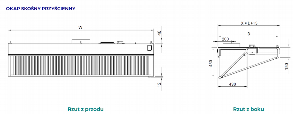 Okap przyścienny wyciągowy, skośny Stalgast, model 208, przeznaczony do niższych pomieszczeń dzięki obniżonemu frontowi okapu, wykonany jest z wysokiej jakości stali nierdzewnej - konstrukcja skrzyniowa z profilowanych blach, spawany i zgrzewany wyposażony w rynienkę ociekową z zaworem spustowym, zawiesia ścienne oraz króciec przyłączeniowy do wentylacji.