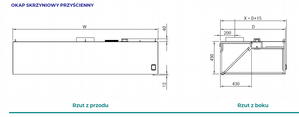 Okap przyścienny skrzyniowy wym. 1400x700x450 mm Stalgast model 206, wyciągowy, bez łapaczy, bez oświetlenia