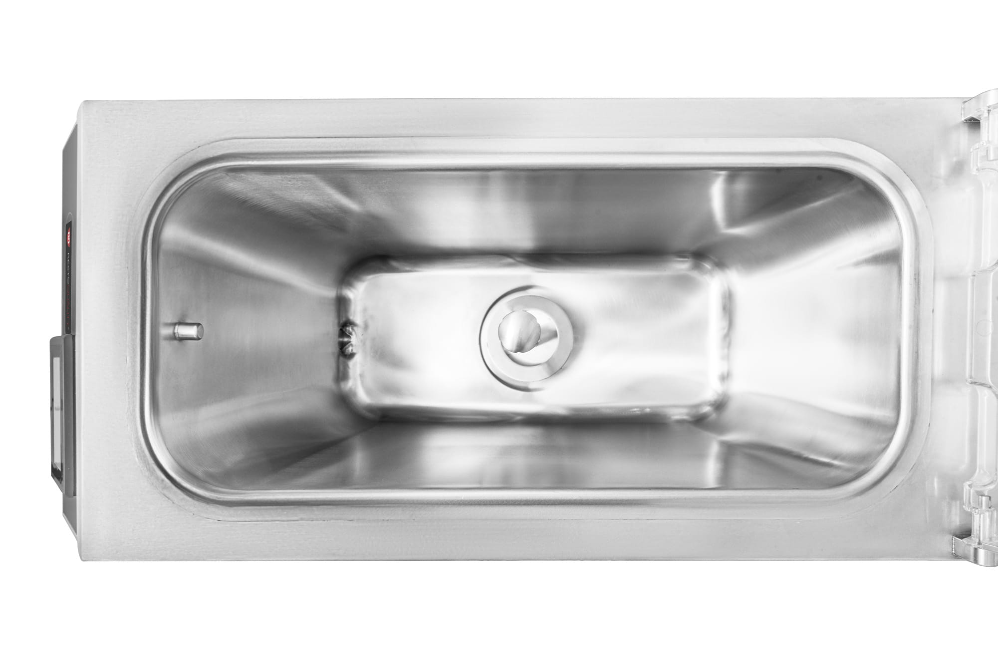• Jednoczęściowy zbiornik wykonany jest ze stali nierdzewnej, z zaokrąglonymi krawędziami i wyprofilowany, co ułatwia odprowadzanie mieszanek oraz czyszczenie