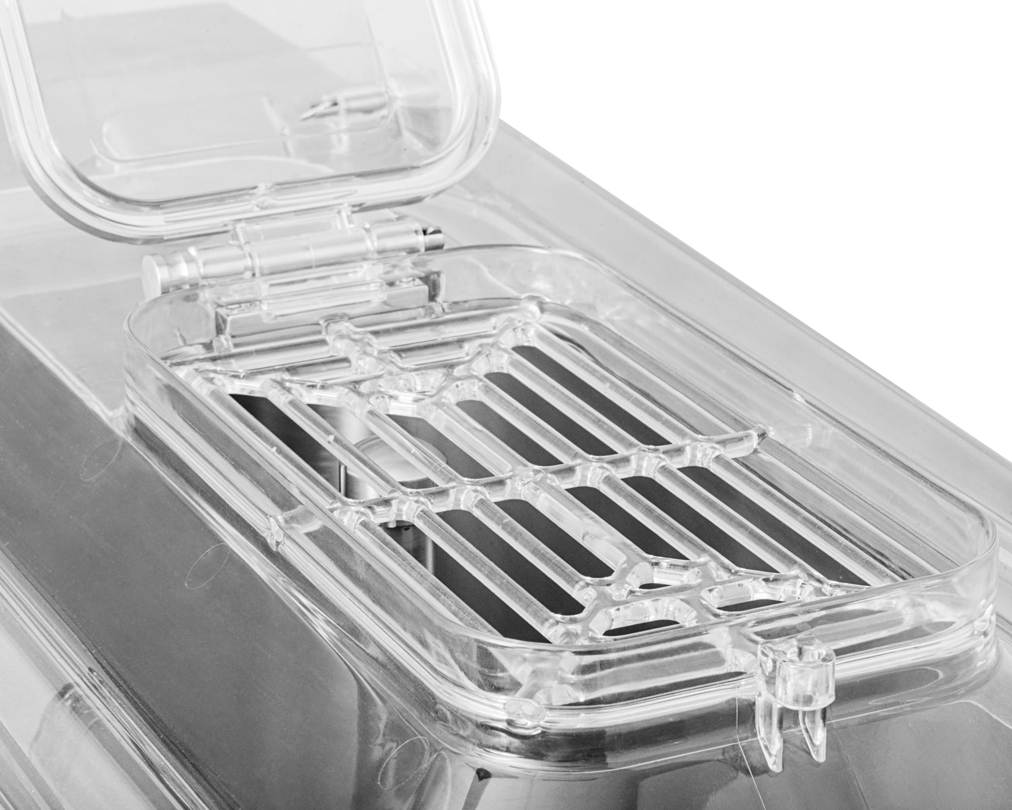 • Podwójna pokrywa może być otwarta w celu dozowania składników w dowolnym momencie