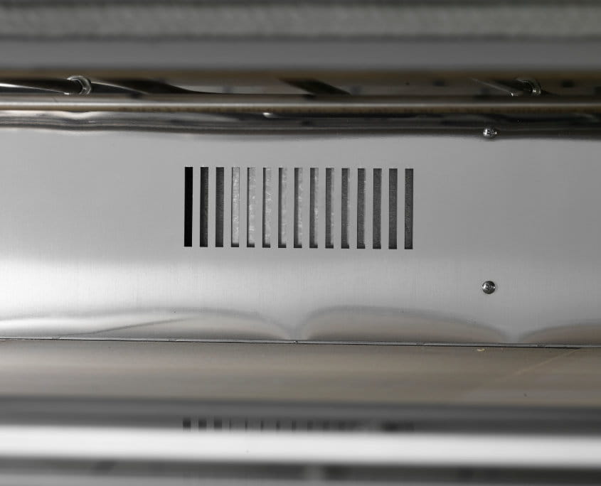 - Komora wyłożona jest płytą z kordierytu, który bardzo dobrze absorbuje i równomiernie rozprowadza ciepło oraz zapewnia doskonałą cyrkulację powietrza pod pizzą. Dzięki temu ciasto jest idealnie wypieczone