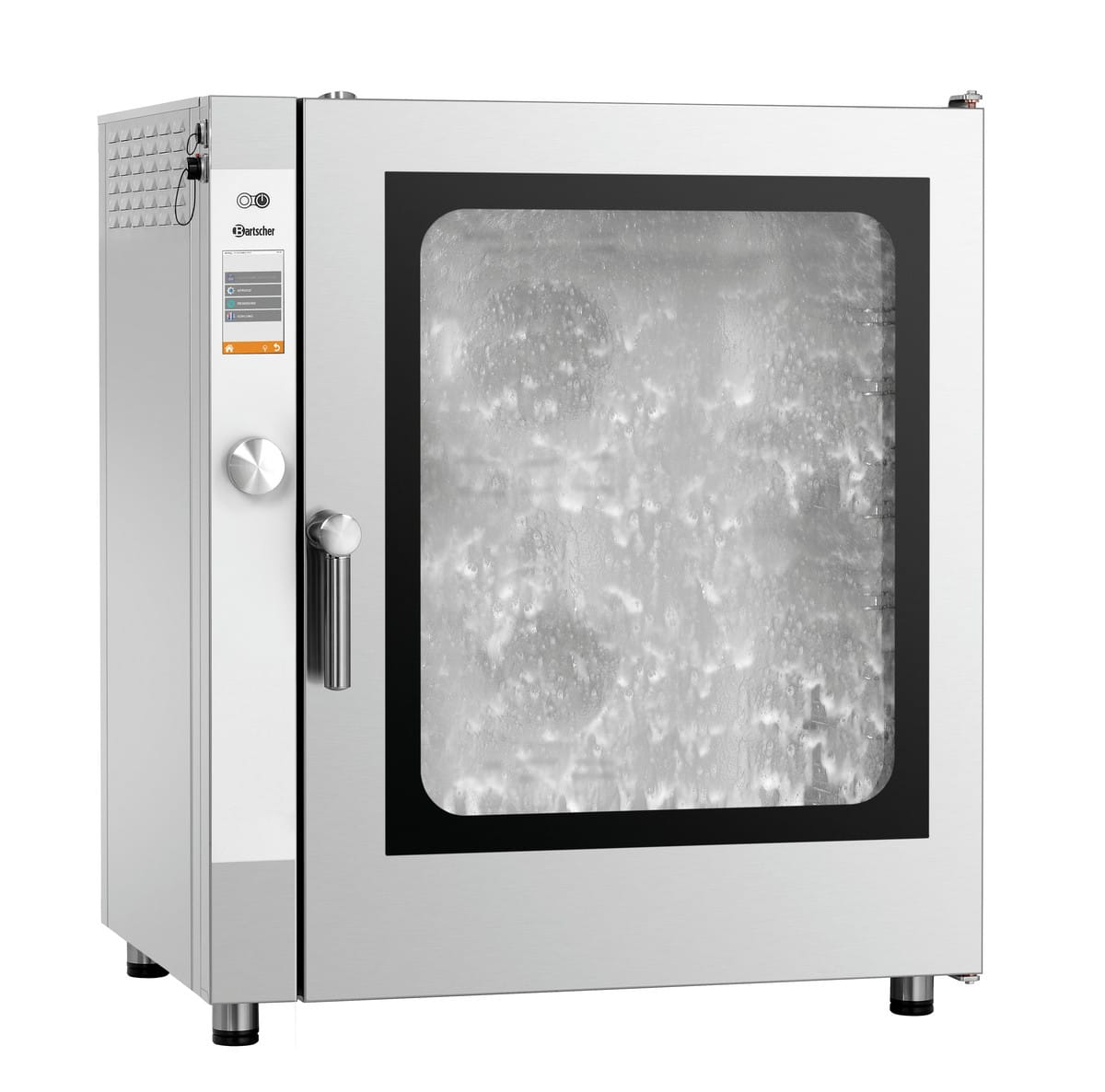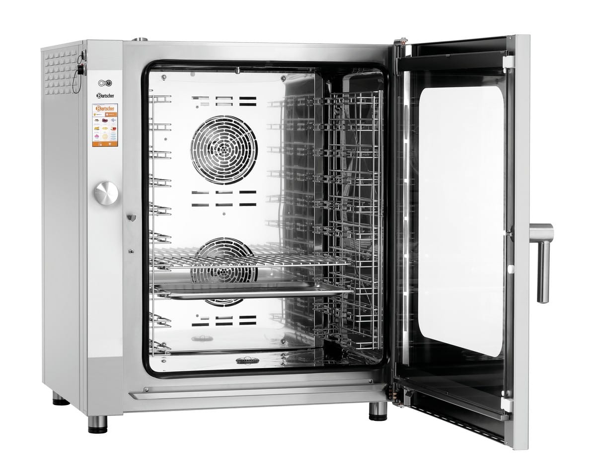 Piec konwekcyjno-parowy marki Bartscher z serii Silversteam z elektroniczną obsługą, systemem czyszczenia i 10 parami prowadnic w formacie 1/1 GN – idealny partner w każdej kuchni. Dzięki funkcji Rack Control możliwe jest przygotowanie najróżniejszych potraw w różnym czasie. Jest to ułatwienie, dzięki któremu model Silversteam ma wszystko pod kontrolą.