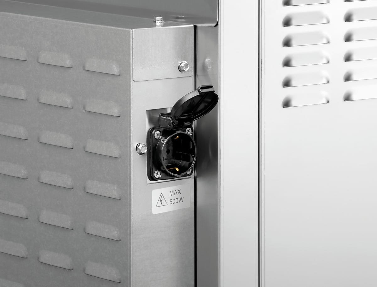 Właściwości: Zaokrąglona komora ,Prowadnice wyjmowane ,Podwójne przeszklenie drzwi ,Oświetlenie LED w drzwiach ,Gniazdo elektryczne (500 W) do podłączenia okapu kuchennego