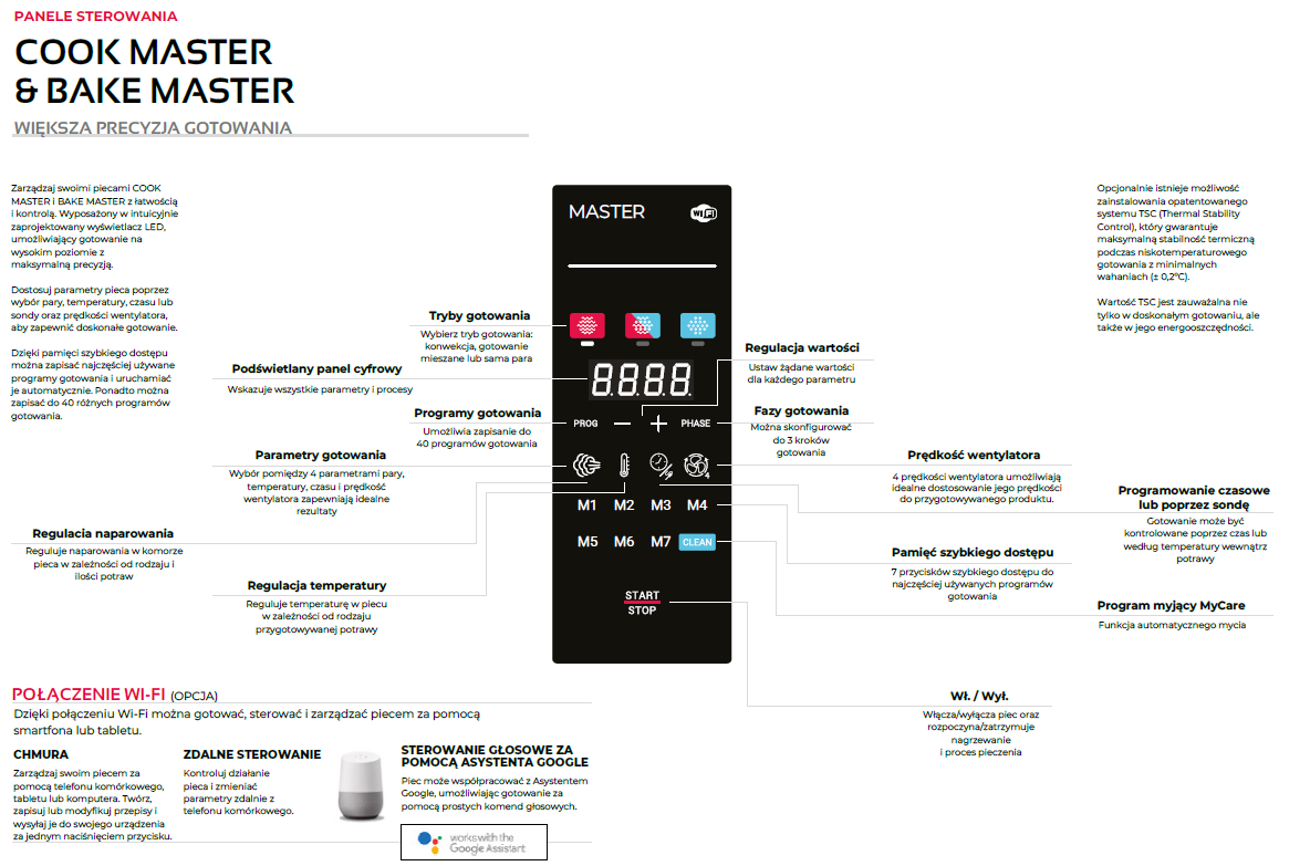 • 3 tryby gotowania: Konwekcja (od 30? do 260?C) / Mieszany: konwekcja + para (od 30? do 260?C) /para wodna nasycona (od 30? do 130?C)