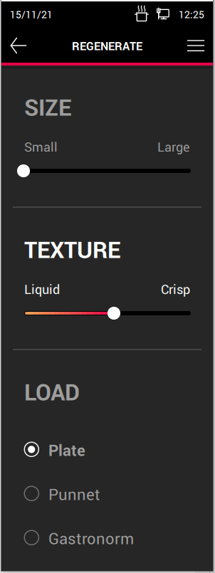 - Just In Time - Synchronizuje wkładanie pojemników, aby wszystkie potrawy były przygotowywane w tym samym czasie
