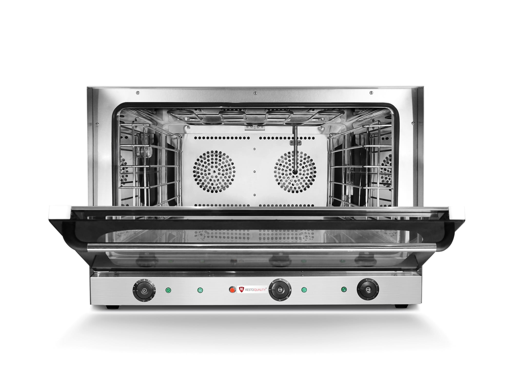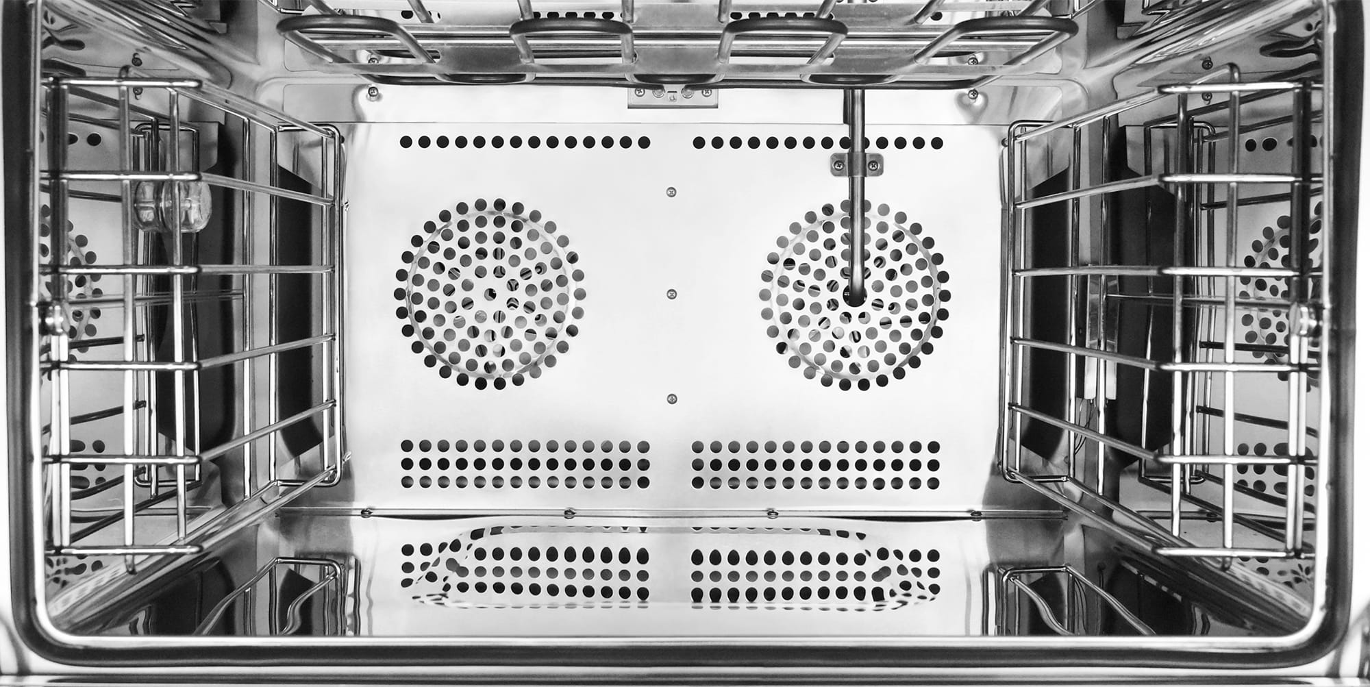 - Dwa wentylatory ze stali nierdzewnej zapewniają równomierną temperaturę w komorze pieczeniaObudowa i komora wykonane są ze stali nierdzewnej, co zapewnia trwałość i ułatwia utrzymanie pieca w czystości