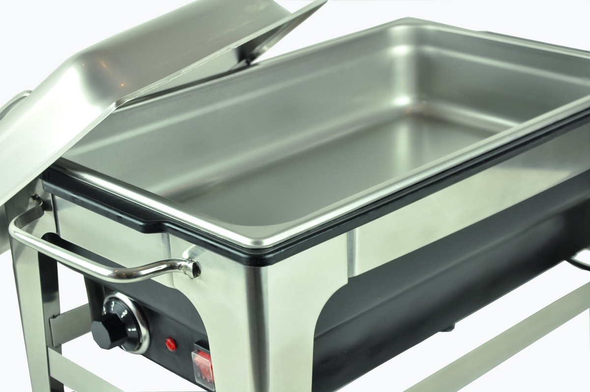 Elektryczny podgrzewacz gastronomiczny przeznaczony do utrzymywania właściwej temperatury gotowych dań i potraw. Przystosowany do pojemników GN1/1. Urządzenie posiada obudowę z wytrzymałego tworzywa sztucznego oraz pojemnik i pokrywę ze stali nierdzewnej. Podgrzewacz posiada nogi i rączki za stali nierdzewnej.