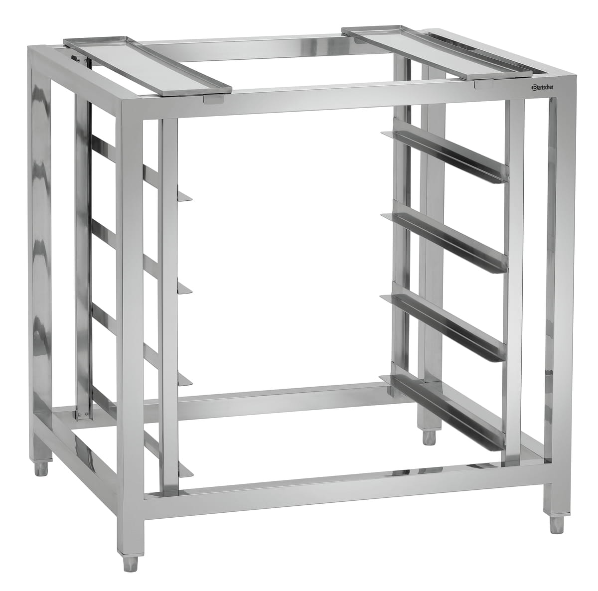 Podstawa do pieca konwekcyjnego AT400 jest wyposażona w 4 pary prowadnic przystosowanych do formatu 600 x 400 mm. Idealnie nadaje się do przechowywania czystych, przygotowanych, jak i użytych blach.