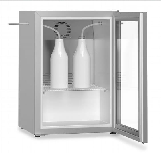 Profesjonalna witryna chłodnicza do mleka do zabudowy pod blat, srebrna LIEBHERR model FKv 503 H48