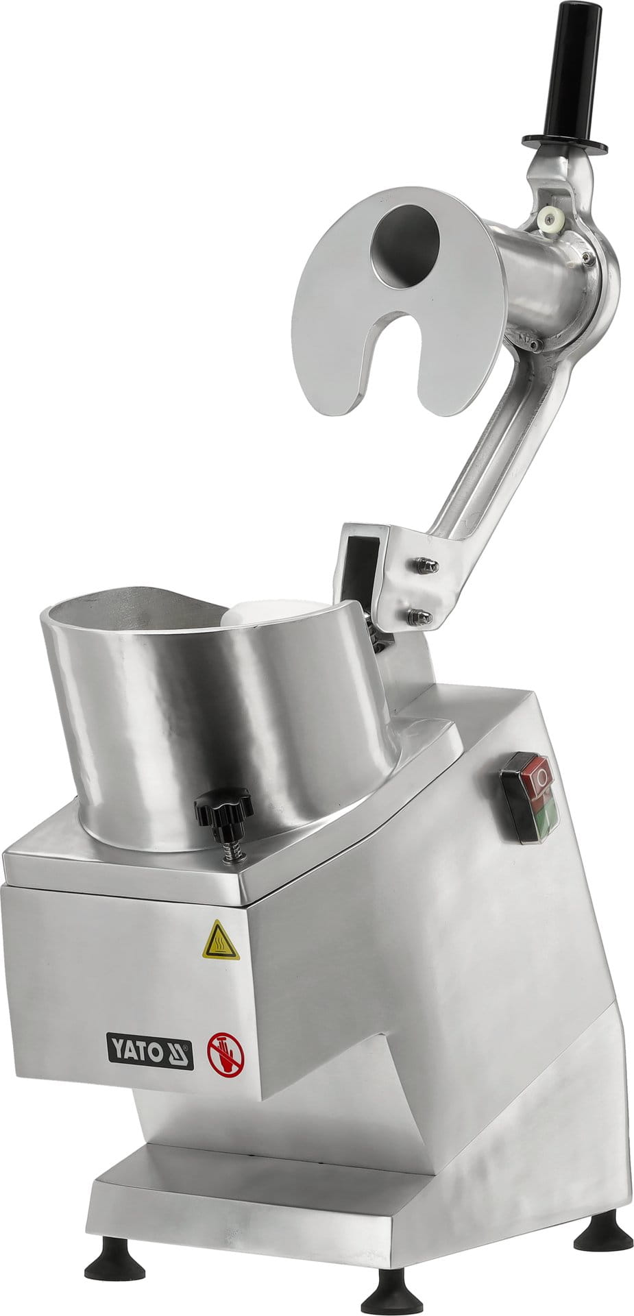 Elektryczna szatkownica do warzyw przeznaczona do użytku usługowego w kuchniach gastronomicznych, restauracjach oraz firmach cateringowych. Silnik o mocy 550 W zapewnia działanie, sięgające 300 kg/h.