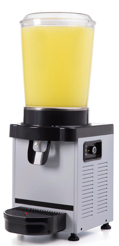 - Dozownik wyposażony w system powolnego mieszania umożliwiający chłodzenie i dozowanie napojów z cząsteczkami, mrożonej kawy, mleka, etc.