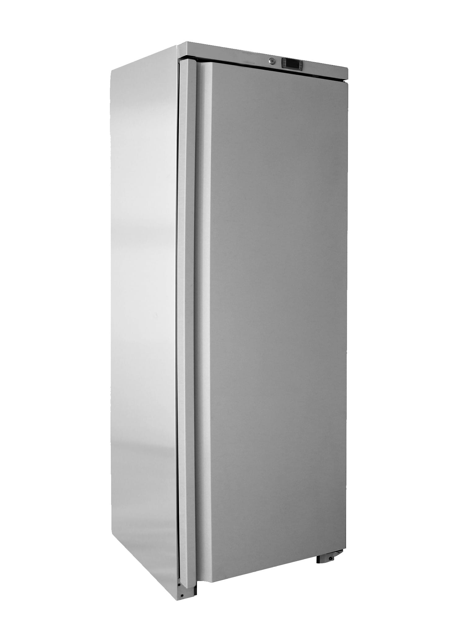 Szafa chłodnicza SR40VS o pojemności 380L wykonana jest ze stali nierdzewnej. Posiada wymuszony obieg powietrza, elektroniczne sterowanie i termostat, możliwość zamknięcia na klucz oraz 2 kółka jezdne (z tyłu).