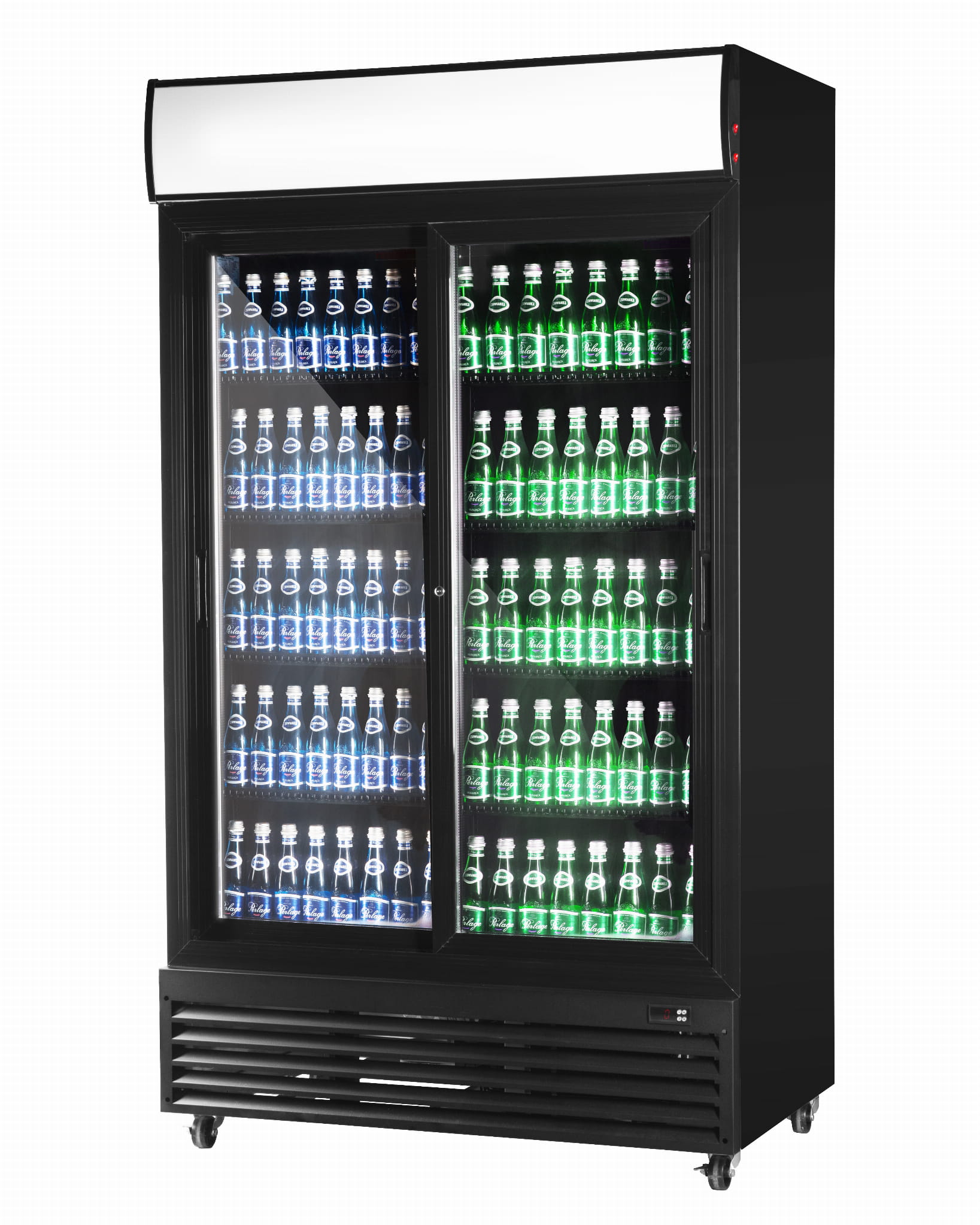 - Posiada przeszklone samozamykające drzwi, dzięki którym produkty są doskonale widoczne.