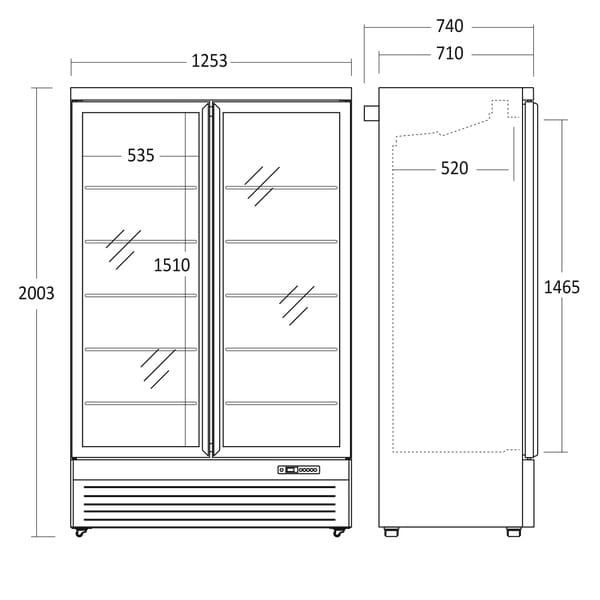 Szafa chłodnicza przeszklona dwudrzwiowa | DC1080BB | 1081 l | 1253x710x2003 mm