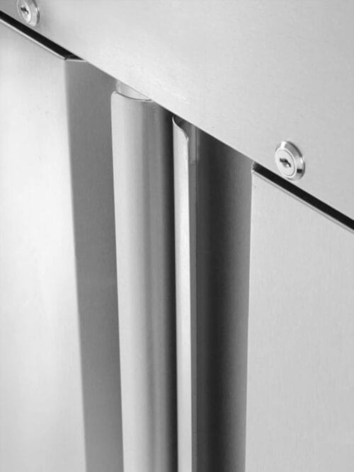 Gastronomiczna, 2-drzwiowa szafa mroźnicza o pojemności 870 litrów użytkowych z agregatem umieszczonym u góry. Wyposażona jest w chłodzenie nawiewowe (wymuszone wentylatorem) oraz automatyczne odszranianie i odparowywanie skroplin. Obudowa oraz wnętrze szafy wykonane są ze stali nierdzewnej.