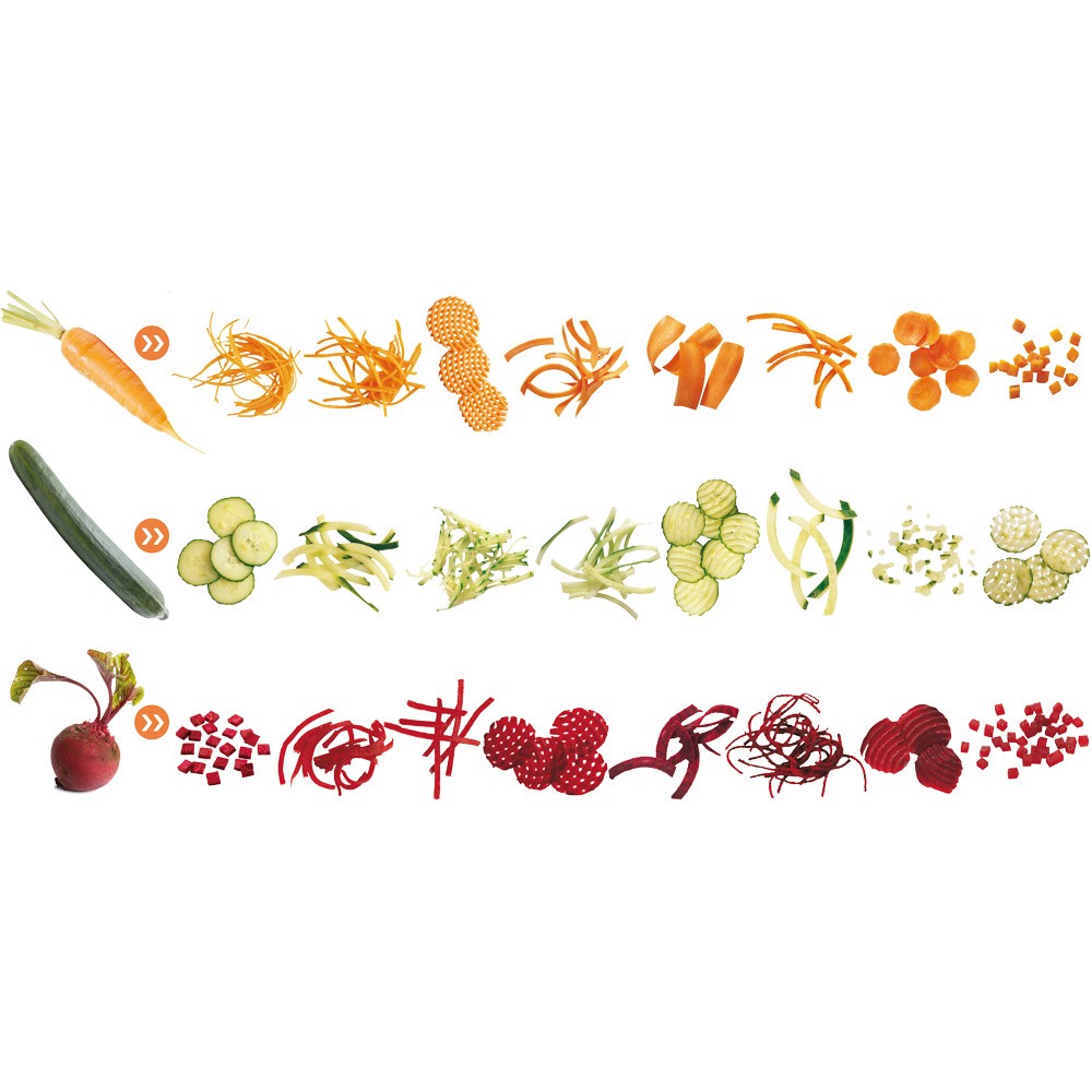 • dostępne 50 tarcz tnących jako wyposażenie opcjonalne: łatwe w czyszczeniu, odporne na zmywanie w zmywarce