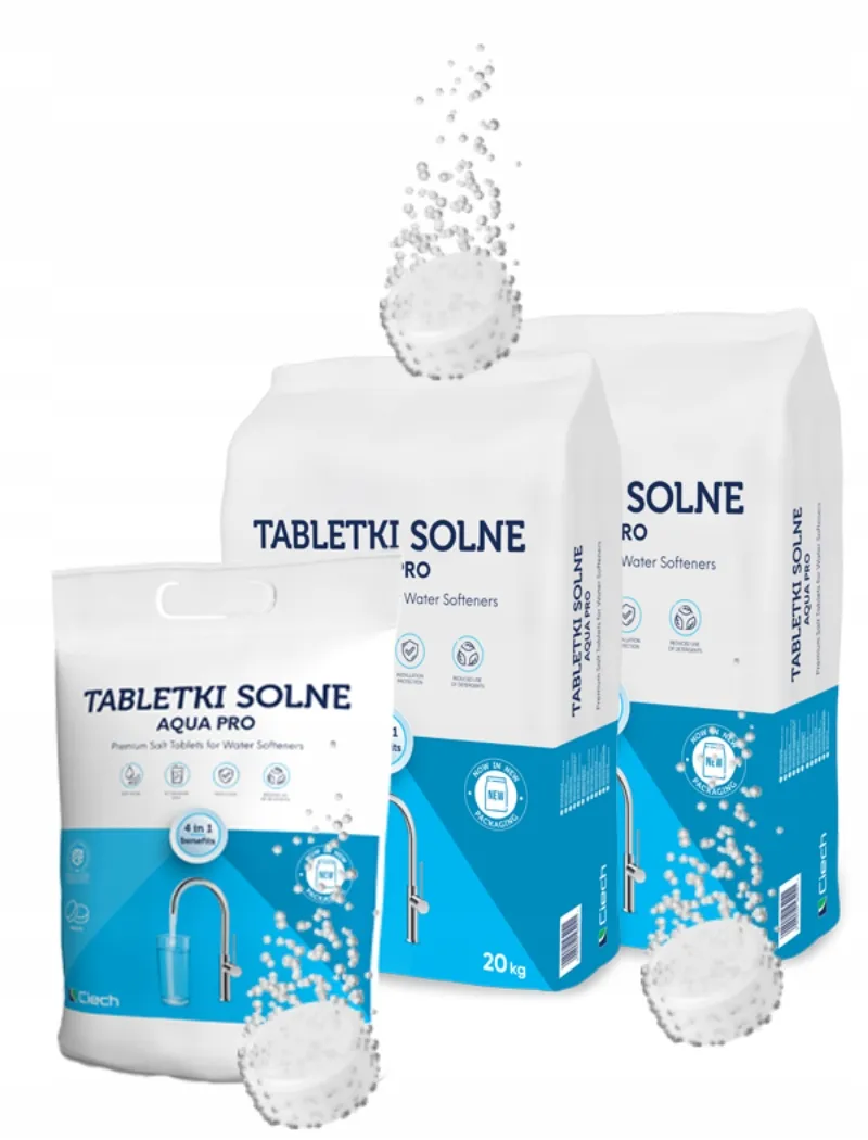 - Zalety produktu: sól niezbędna do regeneracji złóż zmiękczających, kształt pastylki nie pozwala na zbrylanie się soli w zasobnikach