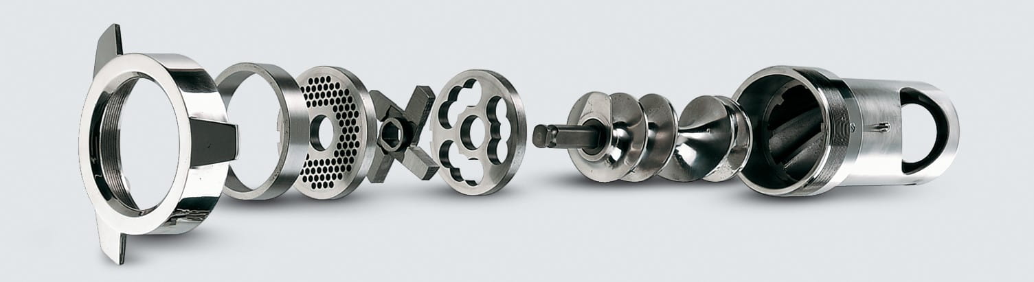 - Kwadratowa gardziel, która pozwala na zwiększenie wydajności i usprawnienie cyklu przetwarzania (również przy wstępnie rozdrobnionym mięsie)