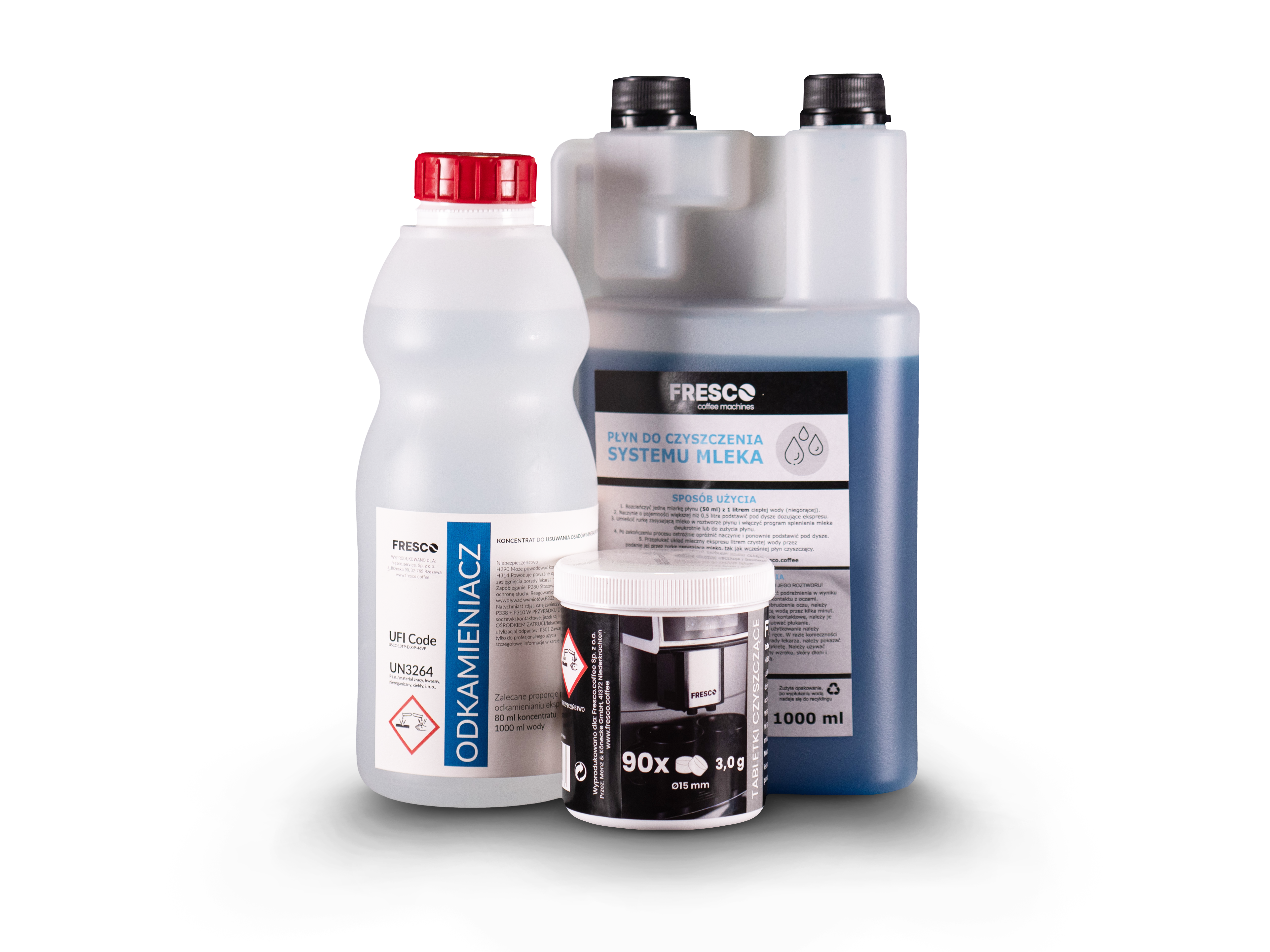 Zestaw środków czystości do ekspresów Fresco zapewniających ich bezawaryjne, długie działanie.