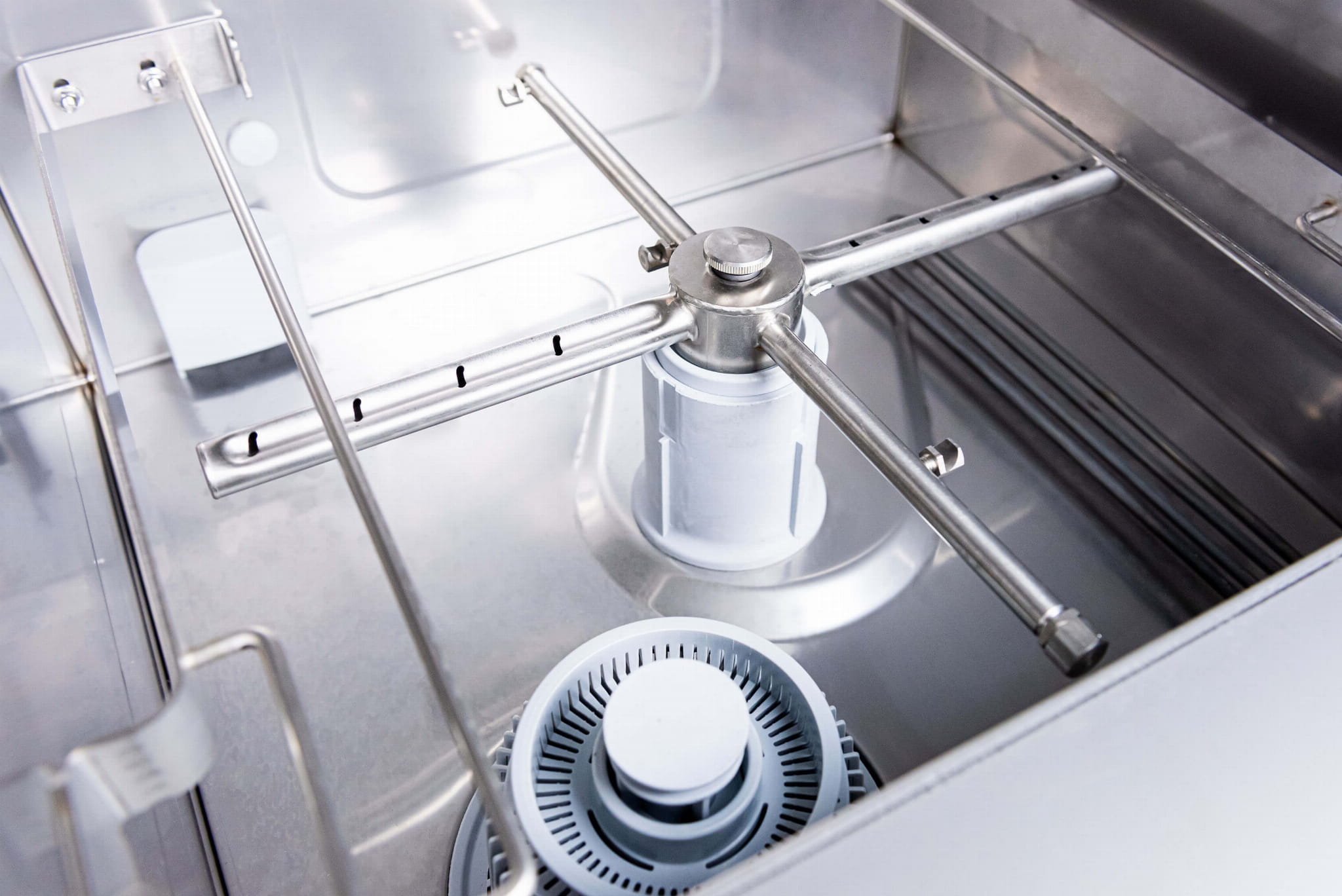 - Na górze i na dole znajdują komory się specjalnie zaprojektowane ramiona płucząco-myjące wykonane ze stali nierdzewnej zwiększające wydajność mycia.