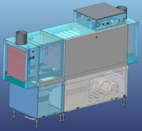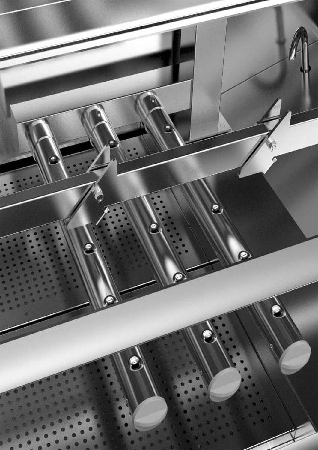 - Temperatury kontrolowane termostatem: mycia wstępnego w zakresie 45-50 °C, mycia właściwego w zakresie 50-60°C, płukania do 85°C