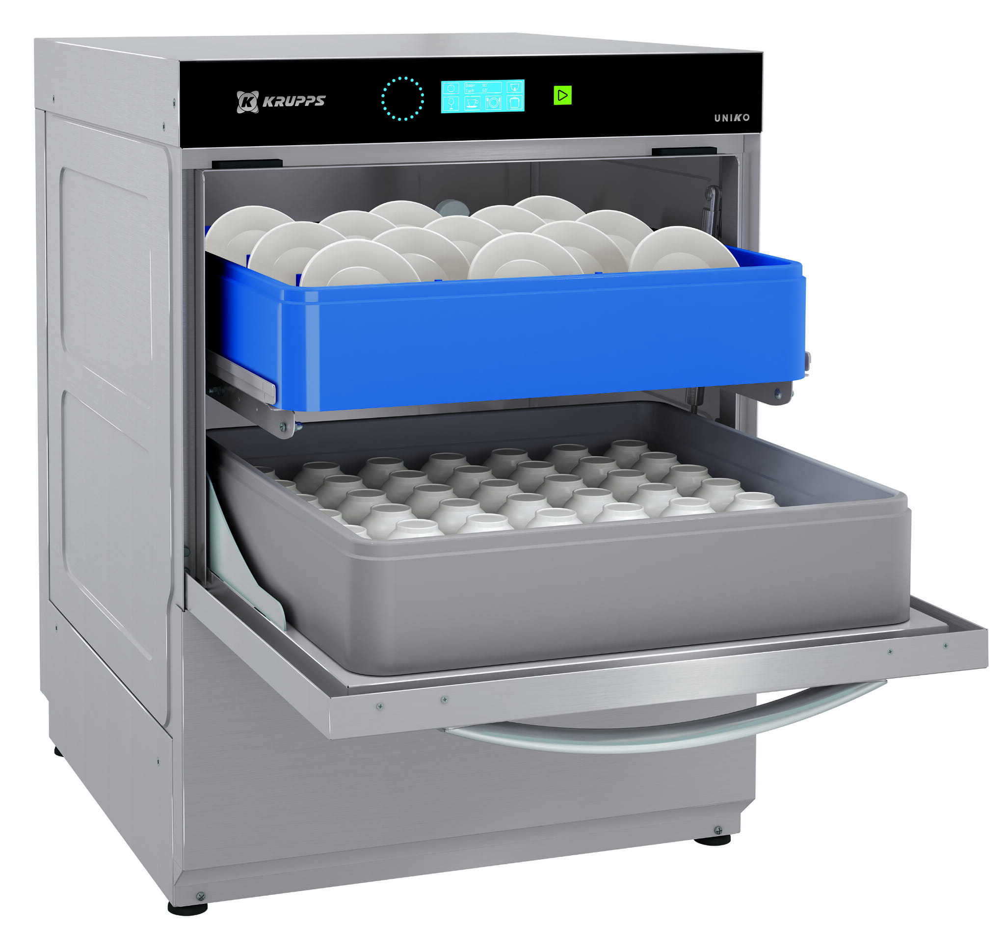 - Panel dotykowy Uniko umożliwia użytkownikowi wybór najlepszego cyklu pracy w zależności od rodzaju mytych naczyń i poziomu zabrudzenia. Dzięki prostym ikonom wybór najodpowiedniejszego cyklu jest niezwykle łatwy i intuicyjny
